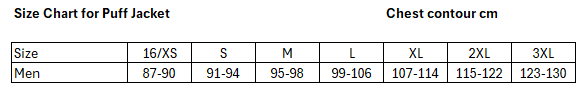Stay warm and stylish with our puff jacket on colder days. Designed for warmth, it's super functional yet lightweight. Windproof and water resistant with a fixed hood with high collar and peak. Two-way front zipper with chin guard plus zippered front pockets and an interior left chest pocket.